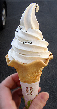 なんといってもこのお店の名物は「醤油ソフトクリーム」(250円)です。トッピングは無料で、「ごま」「ゆず」「くるみ」の3種類から選ぶことができます。