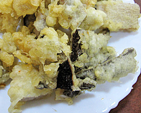 そしてメインは「天ぷら」。ホルモンと野菜を2人前ずつの盛り合わせてもらいました。
