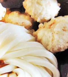 ひとくち大の鶏天は揚げたてアツアツのものが5つ。冷たいうどんにオイルが補給され、体もポカポカ。相性抜群ですね。