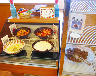 デザートはフルーツカクテルにオレンジ、グレープフルーツ、ヨーグルト、ライチなど。