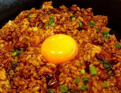 スパイスを調合したカレー粉と牛肉や野菜を長時間煮込んでできたソースが絡まっていて、う~ん美味。ウスターソースの味で濃厚さも懐かしさも倍増で、ウコッケーばりの卵黄はまさにオアシス。