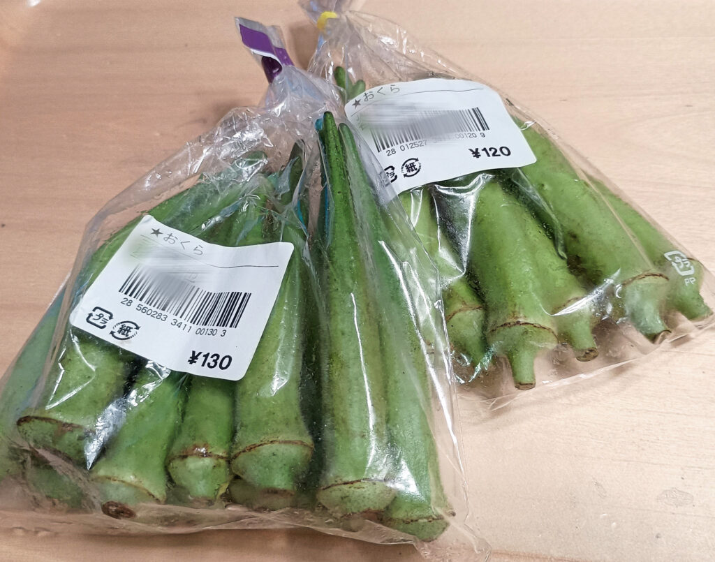 1袋12~15本入りの丸オクラが1袋税込100円から130円程度!安い、やすぅ~い!