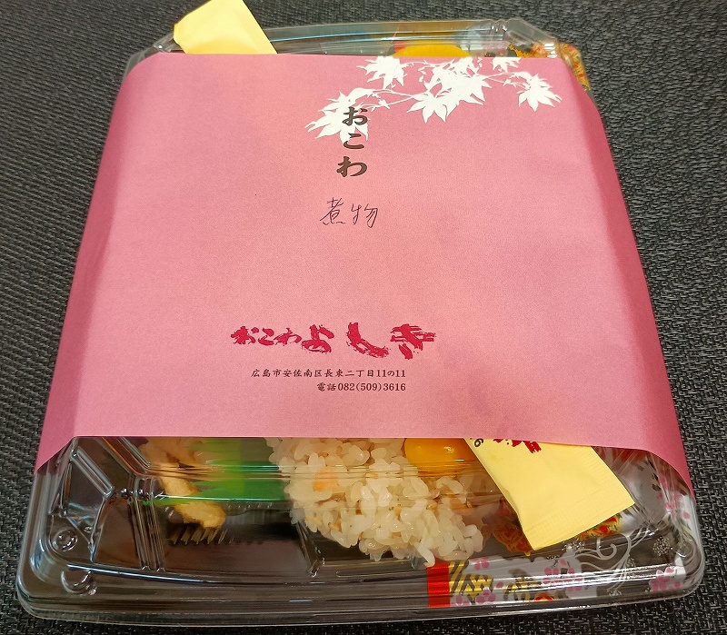 ピンクの掛け紙に「煮物」の文字。シンプルだが、それがいい。 蓋を開けた瞬間、おこわの香りが爆発しやがった!